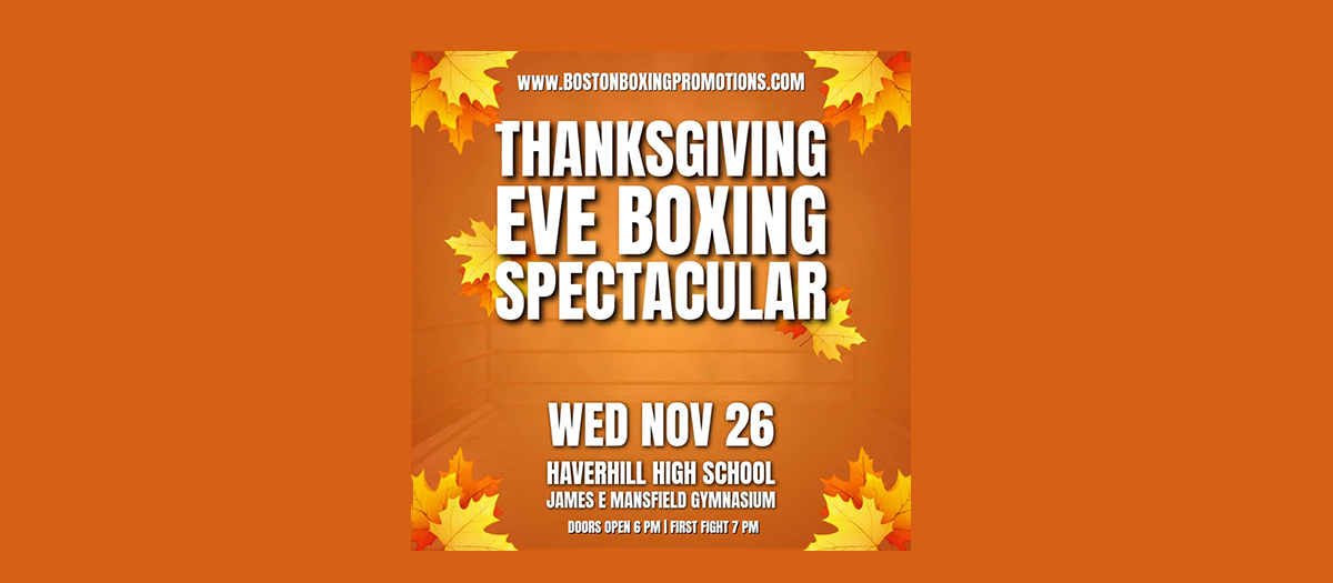 Boston Boxing Promotions announced today that the Thanksgiving Eve Boxing Spectacular scheduled for Wednesday, November 26, 2025, has been moved to James E. Mansfield…